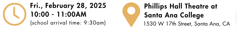 Don't miss this FREE Performance/CTE Field Trip/Bus-In Opportunity for middle school, high school, and Santa Ana College students in dance and the arts. You can sign up to attend as a school group, independently as a parent with your student(s), or as a Santa Ana College student! Experience the art and joy of contemporary dance performed by professional dancers and learn about choreography, composition, music, costuming, production, and more!