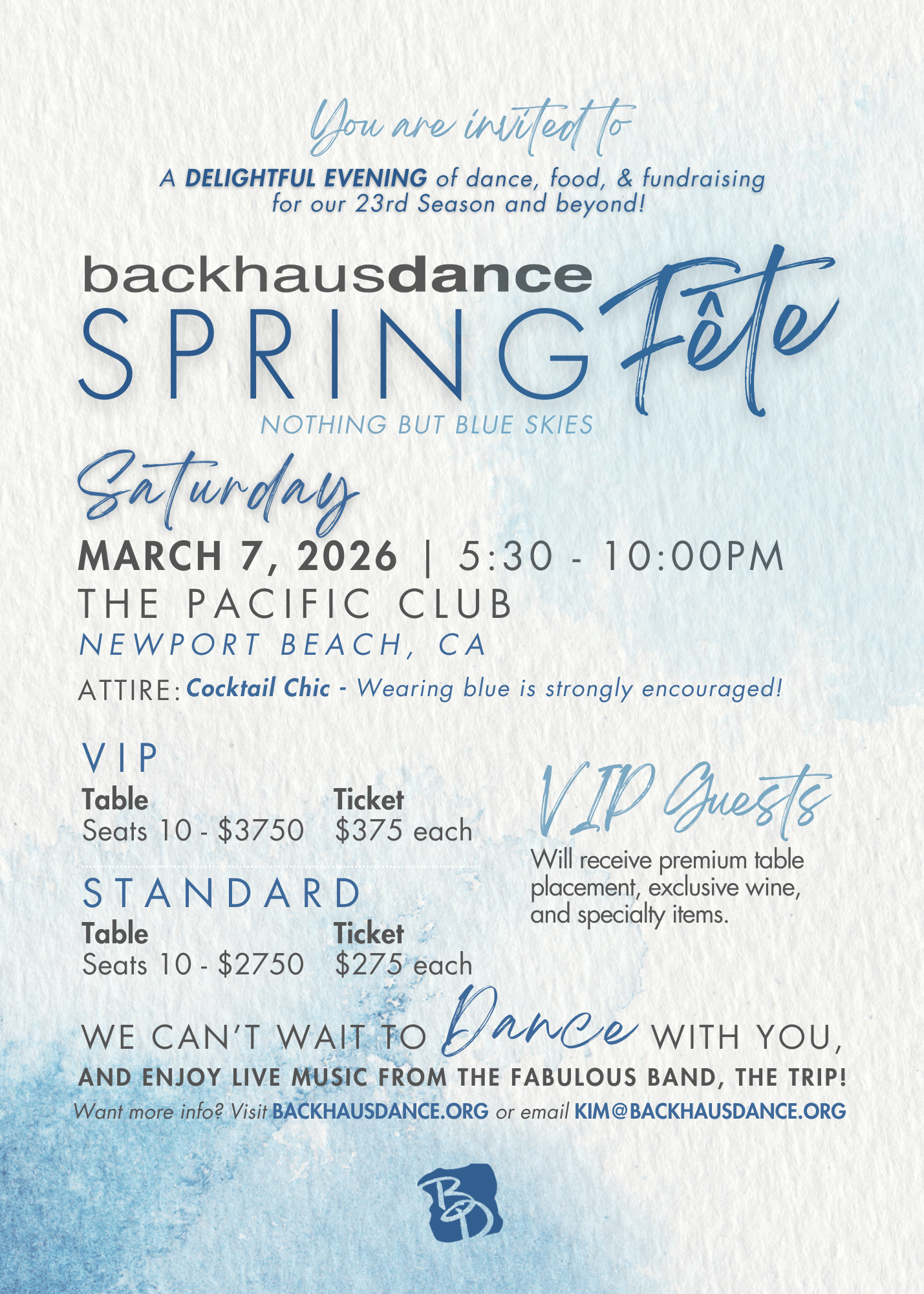 Don’t miss this delightful evening of dance, food, and fundraising for our 23rd season!